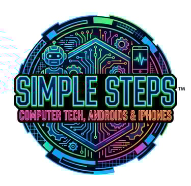 Whether you have an iPhone, Android, laptop, or tablet, Simple Steps Computer Tech offers step-by-step guidance to help you learn, troubleshoot issues, understand apps, navigate the internet, manage email, protect your privacy, and use your device with confidence. While we do not offer physical phone repairs, we focus on education, setup, optimization, and solving technical problems.